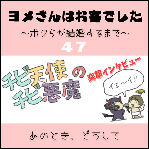 …なら、おっけー【ヨメさんはお客でした~ボクらが結婚するまで~】 ◆これまでの話◆最初から読む方は>>こちらアキの回想は>>こちらひよこの回想は>>こちら >>>続きます! >>>【ボクらが結婚するまで】のまとめはこちらアキの回想は>>こちらひよこの回想は>>こちら◆◇◆◇◆◇◆◇◆◇◆◇◆◇◆◇◆◇PATYのスタッフさんが感想を書 ... 2022/09/22