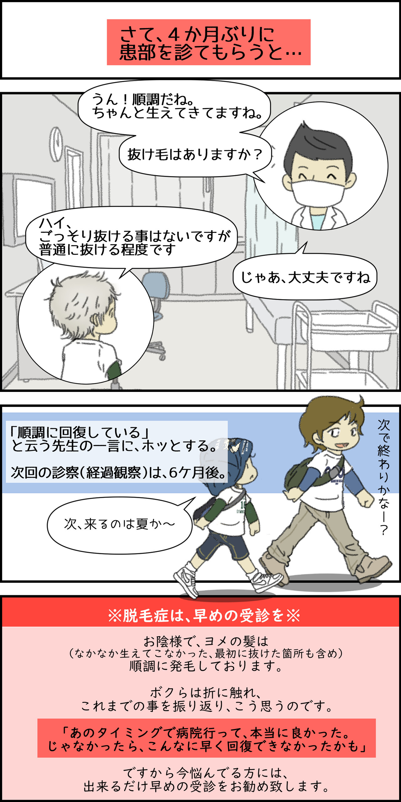 3か月間は月一で通院していました。
