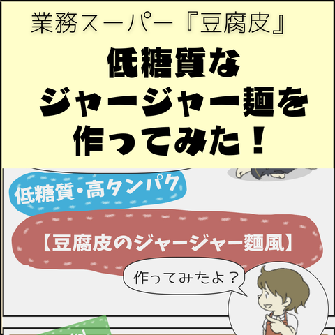 業スーの『豆腐皮』を使って、低糖質なジャージャー麵を作ってみた! 豆腐皮(トウフーピー)って 知っていますか? 豆腐を圧してシート状に伸ばした中華食材です。 業務スーパーの「豆腐皮」(315円)を 使って、ジャージャー麺を作ってみました! 豆腐皮のジャージャー麺 ◆材料(2人分) 豆腐皮 250~300g ひき肉 200g 長ネギ 1/2本(みじん切り、白髪ねぎ) チンゲン菜 1/2束 ショウガ 少量(チューブでもOK) ニンニク 少量(チューブでもOK) ごま油 大さじ1 【A】 甜麺醤 大さじ4 豆板醤 小さじ1 中華だし 小さじ1 醤油 小さじ2 オリゴ糖 小さじ2(砂糖でもOK) 水 200㏄ 片栗粉 小さじ2 コショウ 少々 珍しい豆腐皮ですが、味はしっかり豆腐です。 タンパクな味付けにすると、大豆の風味が出てしまうので 濃いめの食べ方の方が合っているようです。 また、今回の「ジャージャー麺」は、 糖質ゼロ麺で作るとまた違った感じになると 思うので次回試したい思っています。 ジャージャー麺の中華あんは 何にでも合いそうです! 是非お試しください♬ ... 2022/01/07